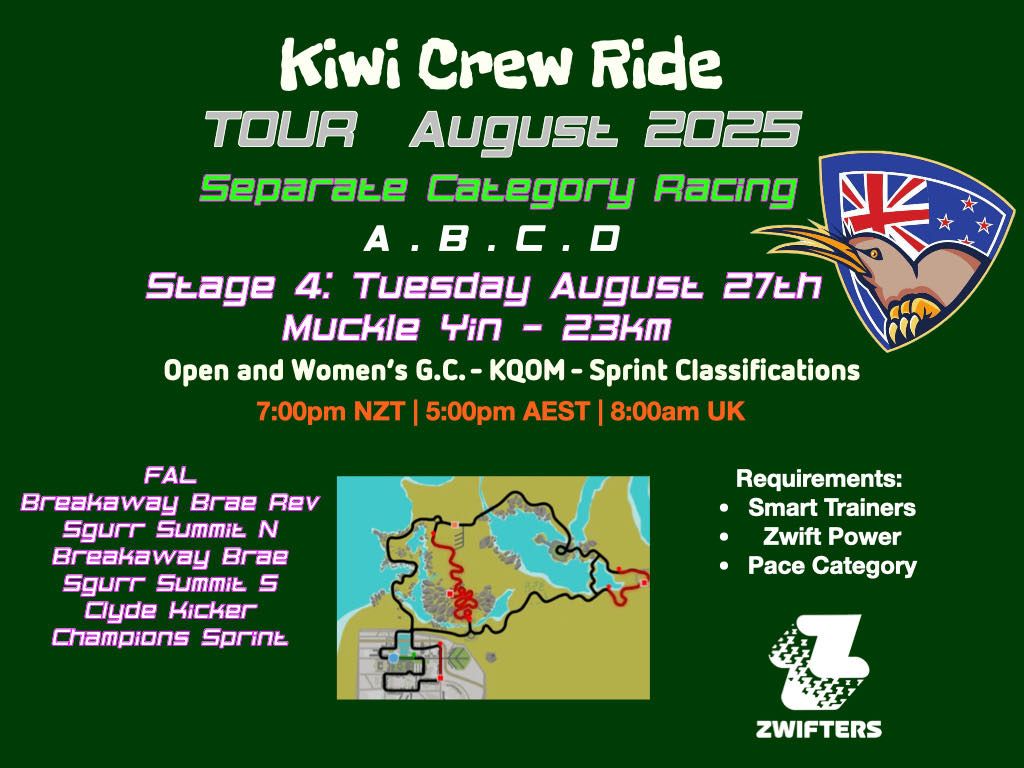 All race results will normally be posted on the Zwift NZ FB page or on here.